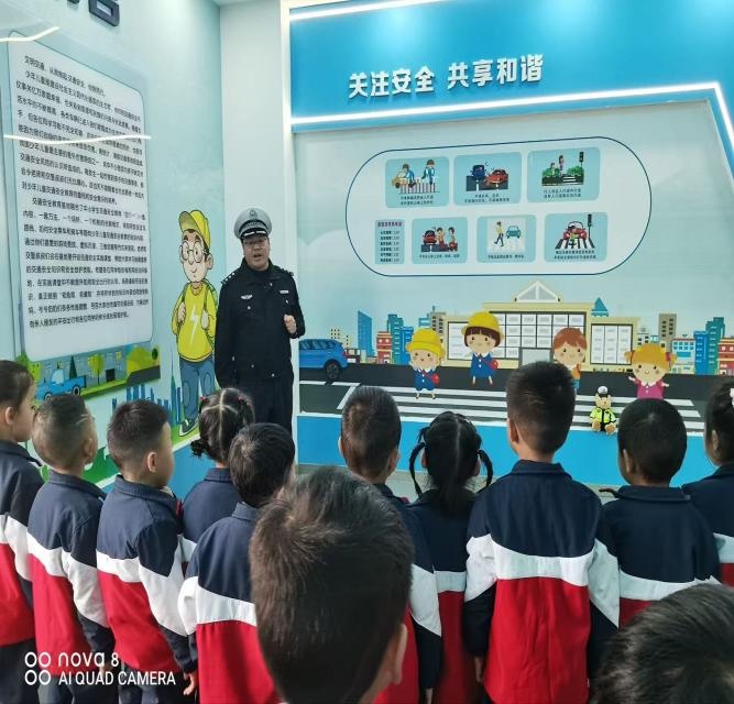 交警叔叔现场讲解交通知识,萌娃们听得格外认真。